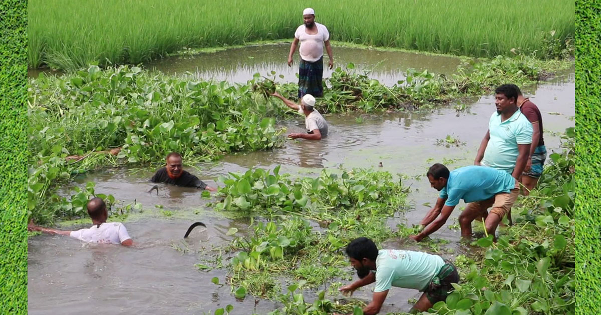 বাচ্চু হোসেন নামে এক কৃষক বলেন, দীর্ঘদিন ধরে এই খালের আগাছা পরিষ্কার হয় না। ফলে পানি নিষ্কাশন বন্ধ হয়ে ফসলি মাঠ তলিয়ে যায়। তাই নিজেরাই খাল পরিষ্কার শুরু করেছি।