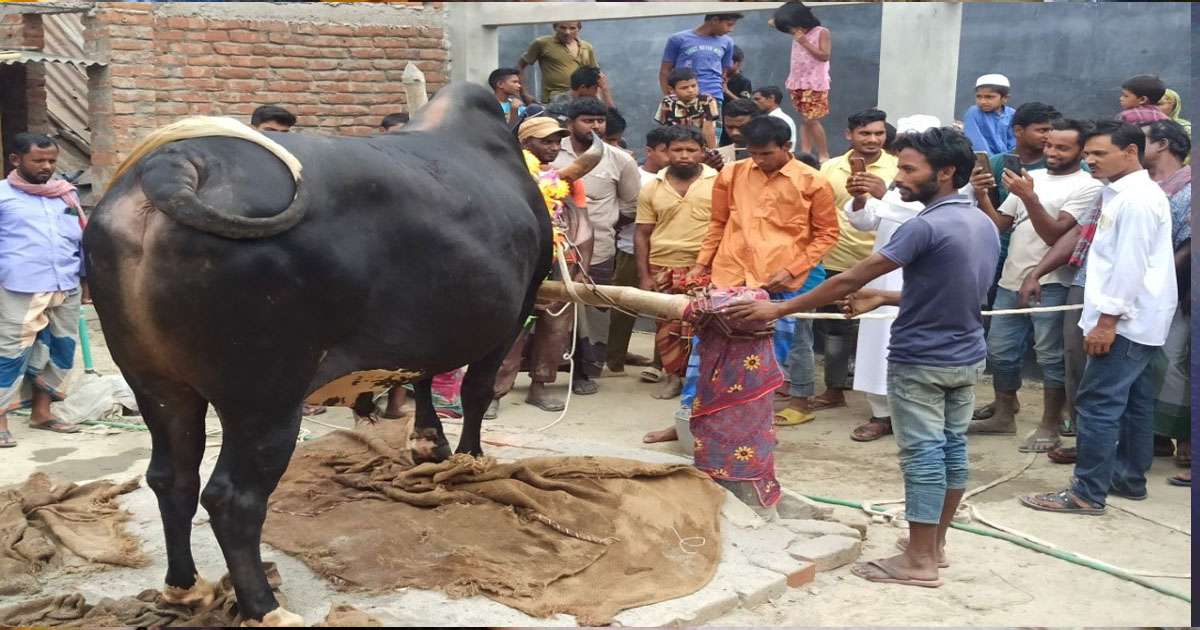 কোরবানির জন্য প্রস্তুত বিশাল আকৃতির লাল ও কালা চাঁন